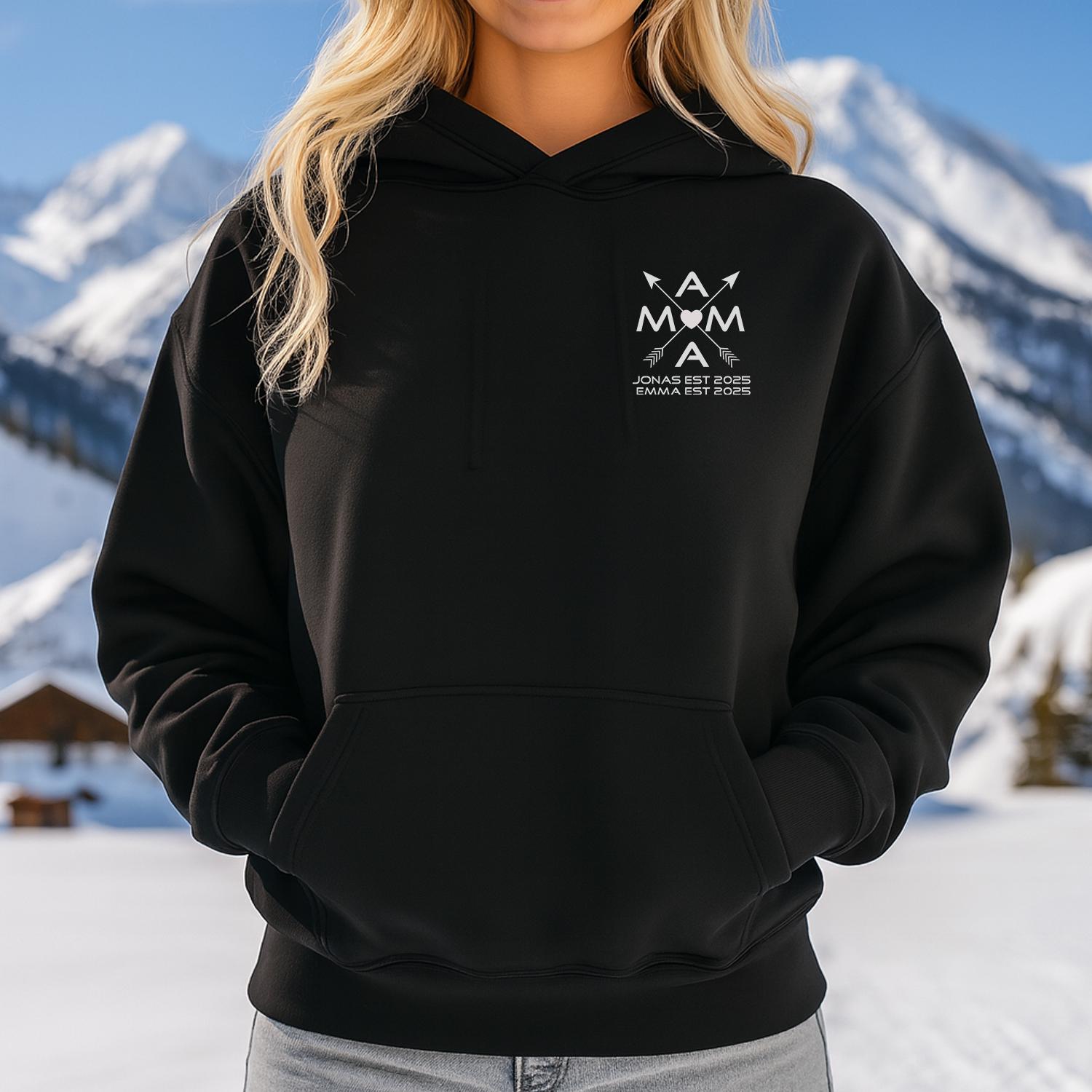 Du suchst nach einem einzigartigen und tollen Weihnachtsgeschenk für Deine Frau? Deine Freundin oder Deine Frau verdient nichts von der Stange, sondern ein personalisiertes Weihnachtsgeschenk für Mama? Dann ist unser Hoodie mit der modischen und doch minimalistischen Personalisierung auf der Brust genau die richtige Wahl. Nenne uns einfach die Namen der Kinder und schon fertigen wir ein Unikat, was Deiner Frau sicherlich die Tränen in die Augen treibt.